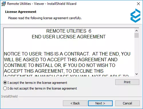 - Accept the End User License Agreement by selecting I accept... and click Next.